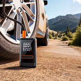 perfetto per gonfiaggi rapidi, precisi e fino a 150 PSI – ideale per pneumatici auto/moto, biciclette, palloni sportivi e molto altro.Precisione Digitale – Imposta la pressione desiderata (0.5-150 PSI) e il compressore si spegne automaticamente, eliminando il rischio di sovra/sottogonfiaggio.Portabilità Senza Fili – Compatto, leggero e ricaricabile via USB-C, pronto all’uso ovunque (auto, viaggi, campo sportivo).Display LED + Luce Integrata – Schermo chiaro e luce pratica per utilizzo notturno o in garage buio.