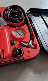 Include un manometro per monitorare la pressione, un tubo flessibile con attacco per valvole e vari adattatori per diverse applicazioni.