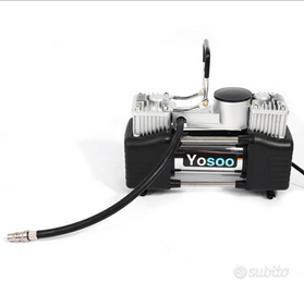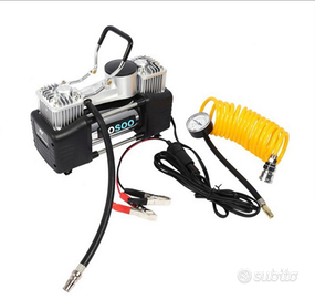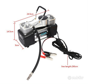 Compressore d'aria per impieghi gravosi, ideale per gonfiare molti tipi di pneumatici, inclusi veicoli a 4 ruote motrici e pneumatici per trattori. L'enorme pressione di esercizio del cilindro del flusso d'aria 150PSI, può raggiungere rapidamente la normale pressione dei pneumatici. Questo mini compressore leggero è piccolo, compatto e portatile per essere riposto facilmente nella maggior parte dei tipi di veicoli. Corpo pompa aria in metallo fuso con radiatore per una migliore dissipazione del calore. Fornito con adattatore di estensione del gonfiatore per pneumatici e altri accessori di gonfiaggio nella borsa per il trasporto. In grado di gonfiare pneumatici per biciclette, pneumatici per auto, palloni da atletica, ecc. Specifiche: