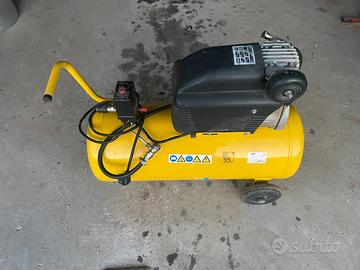 Compressore aria marca Abac, capacità 50 litri, motore elettrico 230v 2 cavalli, pressione massima di esercizio 9 bar. Dotato di manometro, valvola e attacco rapido.