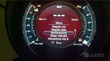 Tra i vari modelli ho pure quello con il menu completo,adatto alle 500 prerestyling (senza Uconnect)nelle quali la data e l ora,le unità di misura e le luci diurne si impostano direttamente dal tachimetro.