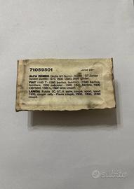 Puntine contatti per accensione auto d'epoca, nuove fondo di magazzino, mai utilizzate e ancora nella confezione originale. Codice ricambio: 71059501 Compatibili con diversi modelli storici: • Alfa Romeo: Giulia GT, Sprint, Super, GT Junior, Spider Duetto, GTC 1600-2600 • Fiat: 1100T, 1300, 1500 berlina/familiare/ cabriolet, 1800, 1500 L, 1500 Ghia coupé • Lancia: Fulvia 2C, GT, II serie, coupé, sport, rally, Flavia coupé (1500, 1800, 2000) Condizioni come da foto: confezione leggermente usurata dal tempo, ma pezzo perfettamente conservato. Ideale per restauro o ricambio per auto d'epoca. PREZZO LEGGERMENTE TRATTABILE.