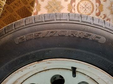 Vendo copertoni 205/70 R15 montati su Suzuki Jimny ed usati per meno di 100km, praticamente nuovi e perfettamente integri, ovviamente montano su tutti i cerchi R15, che siano Suzuki, Daihatsu ecc... Vendo per passaggio a copertoni di taglia maggiore. Non vendo i cerchi. Possibilità di spedizione da concordare il prezzo. FUORISTRADA E SUV (I più comuni): Suzuki: Jimny (tutte le serie), Samurai, Santana, SJ410, SJ413, Vitara (1ª serie) Daihatsu: Terios (1ª serie) Honda: CR-V (dal 1995 al 2001) Subaru: Forester (versioni fino al 2002) Lada: Niva 4x4 Land Rover: Freelander 1 Jeep: Cherokee XJ VAN E VEICOLI COMMERCIALI: Fiat: Ducato Peugeot: Boxer Citroën: Jumper Hyundai: H1 / H-100 Toyota: Hiace MONOVOLUME: Chrysler: Voyager / Grand Voyager (vecchie serie)