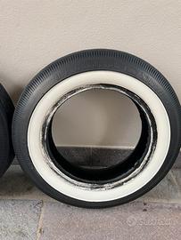 Copertoni fascia bianca ( vulcanizzata ) originali usati sono del 2012 perfetti come nuovi 2 fascie non sono radiali disponibili solo 2 marca B.F. Goodrich Silvertown Made in usa 125 - 12 - 56s erano montati anteriori sulla mia 500 Giardiniera le 2 posteriori girando sul bordo si sono rovinate !