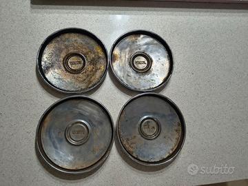 Vendo set di 4 coppe, borchie, coprimozzo cromate per diversi modelli FIAT d'epoca (124, 125, 131) che montano coppe di diametro 24,6 cm come da foto.