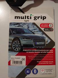 Coppia di calze da neve per auto, marca MULTIGRIP modello Light, nuove, in confezione originale, mai usate e mai aperte, ancora con etichetta attaccata. Testate ed omologate secondo la normativa Europea EN 16662-1.
