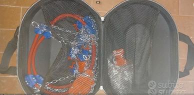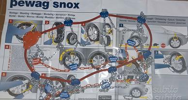 Catene da neve rivoluzionarie a sistema chiuso senza ganci. Modello Snox. Montaggio semplificato: non sono più necessari elementi di chiusura. Tensionamento totalmente automatico. Protezione dei cerchioni. Ottimale per percorsi urbani e strade asfaltate. Prodotte in Europa.