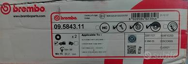 Vendo coppia di dischi freno Brembo modello 09.5843.11 ventilati e verniciati UV, nuovi di zecca, comprati per auto che poi è stata rottamata. Compatibilità con vari modelli Fiat Idea, Doblò, 500, Fiorino. Panda. Qubo, Punto, Stilo, Alfa Romeo Mito, Lancia Musa ecc. Verificare sempre sul web la compatibilità col vostro modello di auto.