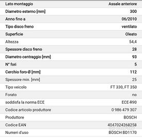 Vendo copia disco freno anteriore Bosch nuovi per Ford Transit per errato acquisto. Diametro esterno 300mm, spessore disco freno 28mm, n*fori 5. Tel 328 1892967.