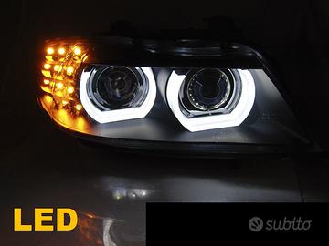 Coppia fanali anteriori neri con anelli luminosi per BMW SERIE 3 E90/E91 2008>2012