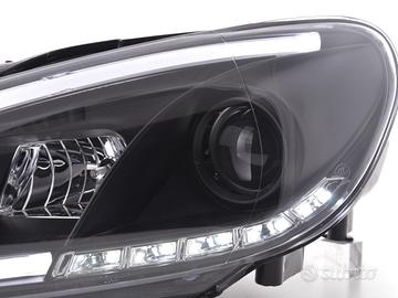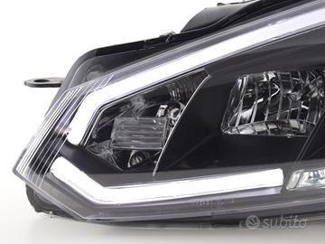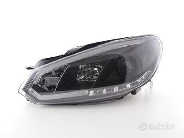 Coppia fanali anteriori neri VW GOLF 6 2008>2012 con frecce integrate, luci diurne a led Tube light