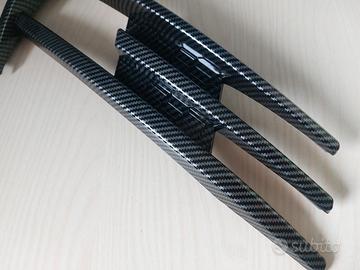 Vendo coppia di inserti estetici (destro + sinistro) per le griglie dei fendinebbia anteriori, finitura Carbon Look lucida. L'accessorio è specifico per Volkswagen Golf 7 / MK7 modelli standard dal 2012 al 2017 Materiale: Fatto in ABS quindi molto leggero e stabile con finitura estetica Carbon Look (effetto fibra di carbonio) Estetica: Bell'effetto sportivo risaltano tantissimo soprattutto su Golf di colore Bianco per l'alto contrasto. Montaggio: Semplicissimo, si applicano sopra la plastica del paraurti tramite il biadesivo ad alta tenuta già presente sul retro senza bisogno di forature o modifiche. P.s Per un risultato duraturo (dato che ho già avuto modo di testarli in passato) consiglio prima di tutto di pulire bene la zona del paraurti in questione con un panno liscio possibilmente in microfibra e un po' di alcool isopropilico se lo si ha, ma va bene anche quello normale. Successivamente consiglio di prendere le misure con del nastro carta di quelli gialli, solo quello gli altri non vanno bene, dopodichè (PASSAGGIO FONDAMENTALE) scaldare bene con un phon tutte le strisce di biadesivo già "nudo" e mettere l'inserto SUBITO sul paraurti e fare pressione con entrambe le mani premendo con forza su TUTTE le zone per qualche minuto. Ripetere lo stesso procedimento anche dall'altro lato.
