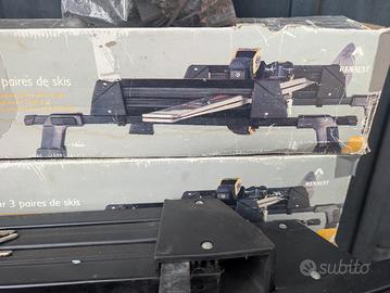per il trasporto dei tuoi sci. Marca: Renault (Accessorio Originale). Capacità: Progettati per trasportare fino a 3 paia di sci per ogni blocco. Sicurezza: Dotati di serratura con chiave (chiavi incluse) per prevenire il furto dell'attrezzatura. Compatibilità: Si montano su barre portatutto trasversali standard. Dotazione: Scatole originali. Manuale d'istruzioni per il montaggio. Viteria e accessori originali inclusi. Stato: Usati molto, con evidenti segni di usura e ruggine superficiale su alcune viti (come da foto), ma pienamente funzionanti e solidi nella struttura.