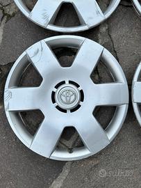 Vendo 4 copricerchi 14 pollici Aygo NON ORIGINALI ma uguali a quelli di serie. Usura evidente in foto, montano perfettamente ganci tutti sani. Formula visto e piaciuto ritiro a mano zona PAVIA