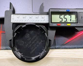 Diametro esterno circa 65,5 mm (clip interne ~55.5mm), compatibili con molti cerchi Volkswagen.