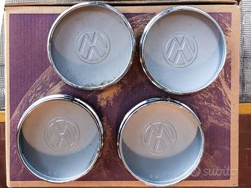 Serie di 4 coprimozzi originali VW Volkswagen Golf GLS 1980. In metallo perfetti, usati pochi km. Nessun segno di usura del tempo o segni di usura da rotolamento. Erano stati subito messi da parte perchè erano stati cambiati i cerchi.
