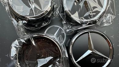 4 Tappi Coprimozzo Mercedes AMG Classe A B C CLS CLA Cerchi in Lega 75mm NERI