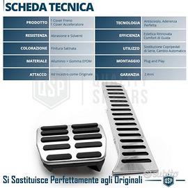 Set Copri Pedali Sportivi per Audi Q3 8U con Cambio Automatico, in Lega di Alluminio Satinata e Gomma Antiscivolo | Installazione a Incastro - Look Sportivo d' Impatto, Metallo Satinato - Elevata Resistenza allo Sfregamento e Corrosione - Comfort Migliorato, Gomma Antiscivolo Spessorata - Installazione Facile a Incastro Plug & Play INFO: I Copri Pedali in Metallo Sono utilizzati per cambiare il Look dei Propri Pedali in Gomma Usurati, conferendo al Proprio Veicolo un Look Sportivo di Impatto, Rinnovando Radicalmente l'estetica degli Interni; non è da Sottovalutare il Comfort dato dal Grip della Gomma Antiscivolo Spessorata che fa di questo prodotto una Vera Pedaliera Sportiva per Auto. COMPATIBILITÀ: - Per Audi Q3 8U (2011-2018) Con Cambio Automatico INSTALLAZIONE: 1) Rimuovere gli Attuali Gommini o Plastiche dai Pedali 2) Applicare a Incastro le Nuove Cover Pedali e, per il Pedale dell'Acceleratore, Chiudere le Linguette laterali Serrandole verso il Pedale con l'aiuto di una Pinza Dettagli Tecnici - IL PACCO INCLUDE: 2 Copripedali: 1 Freno, 1 Accelleratore - COLORE: Finitura Satinata - CARATTERISTICA: Per Versioni Cambio Automatico - ATTACCO: Ad Incastro come Originale - TECNOLOGIA: Antiscivolo, Aderenza Perfetta - UTILIZZO: Sostituzione Copri Pedali di Serie - EFFICIENZA: Estetica Rinnovata, Comfort di Guida - MONTAGGIO: Plug & Play - MATERIALE: Alluminio + Gomma EPDM - RESISTENZA: Abrasione e Solventi - DURATA STIMATA: Massima Resistenza Garantita - INFO AGGIUNTIVE: Prodotto Professionale PER INFO CONTATTARE AL 3927091031 ANCHE LINEA WhatsApp OPPURE VIA E-MAIL: rtautoitalia2018@libero.it CONSEGNA: - Effettuiamo Spedizioni 24-48H in TUTTA ITALIA - Ritiro in Sede con Possibilità di Visionare il Prodotto - Vendiamo solo Articoli Nuovi PAGAMENTI: - PayPal - Con Carta - Bonifico Bancario - Alla Consegna con Contrassegno
