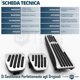 Set Copri Pedali Sportivi per Bmw Serie 1 E87 E81 E82 E88 con Cambio Manuale, in Lega di Alluminio Satinata e Gomma Antiscivolo | Installazione a Incastro - Look Sportivo d' Impatto, Metallo Satinato - Elevata Resistenza allo Sfregamento e Corrosione - Comfort Migliorato, Gomma Antiscivolo Spessorata - Installazione Facile a Incastro Plug & Play INFO: I Copri Pedali in Metallo Sono utilizzati per cambiare il Look dei Propri Pedali in Gomma Usurati, conferendo al Proprio Veicolo un Look Sportivo di Impatto, Rinnovando Radicalmente l'estetica degli Interni; non è da Sottovalutare il Comfort dato dal Grip della Gomma Antiscivolo Spessorata COMPATIBILITÀ: - Per Bmw Serie 1 E87, E81 (2004-2012), Con Cambio Manuale - Per Bmw Serie 1 E82, E88 (2007-2013), Con Cambio Manuale **: Verificare la Forma Laterale del Pedale dell'Acceleratore (Vedi foto n.2)** INSTALLAZIONE: 1) Rimuovere gli Attuali Gommini o Plastiche dai Pedali 2) Applicare a Incastro le Nuove Cover Pedali (Il Pedale dell'Acceleratore va Inserito dall'alto verso il Basso) Dettagli Tecnici - IL PACCO INCLUDE: 3 Copripedali: 1 Frizione, 1 Freno, 1 Accelleratore - COLORE: Finitura Satinata - CARATTERISTICA: Per Versioni Cambio Manuale - ATTACCO: Ad Incastro come Originale - TECNOLOGIA: Antiscivolo, Aderenza Perfetta - UTILIZZO: Sostituzione Copri Pedali di Serie - EFFICIENZA: Estetica Rinnovata, Comfort di Guida - MONTAGGIO: Plug & Play - MATERIALE: Alluminio + Gomma EPDM - RESISTENZA: Abrasione e Solventi - DURATA STIMATA: Massima Resistenza Garantita - INFO AGGIUNTIVE: Prodotto Professionale PER INFO CONTATTARE AL 3927091031 ANCHE LINEA WhatsApp OPPURE VIA E-MAIL: rtautoitalia2018@libero.it CONSEGNA: - Effettuiamo Spedizioni 24-48H in TUTTA ITALIA - Ritiro in Sede con Possibilità di Visionare il Prodotto - Vendiamo solo Articoli Nuovi PAGAMENTI: - PayPal - Con Carta - Bonifico Bancario - Alla Consegna con Contrassegno