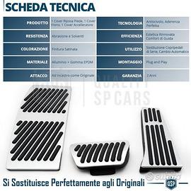 "Set Copri Pedali Sportivi per BMW Serie 2 F22 F23 con Cambio Automatico, in Lega di Alluminio Satinata e Gomma Antiscivolo | Installazione a Incastro - Look Sportivo d' Impatto, Metallo Satinato - Elevata Resistenza allo Sfregamento e Corrosione - Comfort Migliorato, Gomma Antiscivolo Spessorata - Installazione Facile a Incastro Plug & Play INFO: I Copri Pedali in Metallo Sono utilizzati per cambiare il Look dei Propri Pedali in Gomma Usurati, conferendo al Proprio Veicolo un Look Sportivo di Impatto, Rinnovando Radicalmente l'estetica degli Interni; non è da Sottovalutare il Comfort dato dal Grip della Gomma Antiscivolo Spessorata che fa di questo prodotto una Vera Pedaliera Sportiva per Auto. COMPATIBILITÀ: - Per BMW Serie 2 F22 F23 (2014-2021), Con Cambio Automatico : Verificare la Forma Laterale del Pedale dell'Acceleratore (Vedi foto n.2) INSTALLAZIONE: 1) Rimuovere gli Attuali Gommini o Plastiche dai Pedali 2) Applicare a Incastro le Nuove Cover Pedali (Il Pedale dell'Acceleratore va Inserito dall'alto verso il Basso) 3) Fissare il Riposa Piede grazie all'adesivo Presente nella Parte Posteriore Dettagli Tecnici - IL PACCO INCLUDE: 3 Copripedali: 1 Riposa Piede, 1 Freno, 1 Accelleratore - COLORE: Finitura Satinata - ATTACCO: Ad Incastro come Originale - TECNOLOGIA: Antiscivolo, Aderenza Perfetta - UTILIZZO: Sostituzione Copri Pedali di Serie - EFFICIENZA: Estetica Rinnovata, Comfort di Guida - MONTAGGIO: Plug & Play - MATERIALE: Alluminio + Gomma EPDM - RESISTENZA: Abrasione e Solventi - DURATA STIMATA: Massima Resistenza Garantita - INFO AGGIUNTIVE: Prodotto Professionale PER INFO CONTATTARE AL 3927091031 ANCHE LINEA WhatsApp OPPURE VIA E-MAIL: rtautoitalia2018@libero.it CONSEGNA: - Effettuiamo Spedizioni 24-48H in TUTTA ITALIA - Ritiro in Sede con Possibilità di Visionare il Prodotto PAGAMENTI: - PayPal - Con Carta - Bonifico Bancario - Alla Consegna con Contrassegno