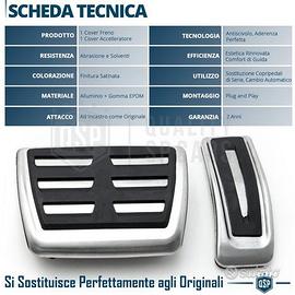 Set Copri Pedali Sportivi per Audi A8 D4-4H con Cambio Automatico, in Lega di Alluminio Satinata e Gomma Antiscivolo | Installazione a Incastro - Look Sportivo d' Impatto, Metallo Satinato - Elevata Resistenza allo Sfregamento e Corrosione - Comfort Migliorato, Gomma Antiscivolo Spessorata - Installazione Facile a Incastro Plug & Play INFO: I Copri Pedali in Metallo Sono utilizzati per cambiare il Look dei Propri Pedali in Gomma Usurati, conferendo al Proprio Veicolo un Look Sportivo di Impatto, Rinnovando Radicalmente l'estetica degli Interni; non è da Sottovalutare il Comfort dato dal Grip della Gomma Antiscivolo Spessorata che fa di questo prodotto una Vera Pedaliera Sportiva per Auto. COMPATIBILITÀ: - Per Audi A8 D4-4H (2009-2017), Con Cambio Automatico INSTALLAZIONE: 1) Rimuovere gli Attuali Gommini o Plastiche dai Pedali 2) Applicare a Incastro le Nuove Cover Pedali Dettagli Tecnici - IL PACCO INCLUDE: 2 Copripedali: 1 Freno, 1 Accelleratore - COLORE: Finitura Satinata - CARATTERISTICA: Per Versioni Cambio Automatico - ATTACCO: Ad Incastro come Originale - TECNOLOGIA: Antiscivolo, Aderenza Perfetta - UTILIZZO: Sostituzione Copri Pedali di Serie - EFFICIENZA: Estetica Rinnovata, Comfort di Guida - MONTAGGIO: Plug & Play - MATERIALE: Alluminio + Gomma EPDM - RESISTENZA: Abrasione e Solventi - DURATA STIMATA: Massima Resistenza Garantita - INFO AGGIUNTIVE: Prodotto Professionale PER INFO CONTATTARE AL 3927091031 ANCHE LINEA WhatsApp OPPURE VIA E-MAIL: rtautoitalia2018@libero.it CONSEGNA: - Effettuiamo Spedizioni 24-48H in TUTTA ITALIA - Ritiro in Sede con Possibilità di Visionare il Prodotto - Vendiamo solo Articoli Nuovi PAGAMENTI: - PayPal - Con Carta - Bonifico Bancario - Alla Consegna con Contrassegno