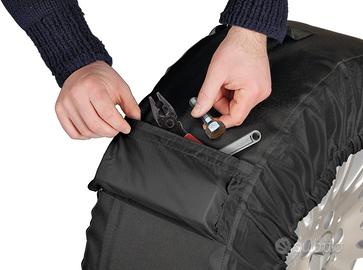 Copriruote LAMPA De-Luxe, set 4 - Taglia L Comode per depositare il set di ruote, trasportarle. Si chiudono con velcro e lacci, hanno maniglia, tasca portaoggetti, disegno per promemoria posizione ruota. Usate un paio di volte, assolutamente perfette N.B. Alcune foto sono prese dal sito LAMPA per mostrare la funzionalità, 2 sono foto reali di quello che vendo