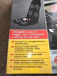 vendo per utilizzo coprisedile massaggiante nuovo per il funzionamento c'è un trasformatore a spina per uso domestico, è invece per uso in auto macchina funzionante con accendisigari con telecomando luminoso per regolare il tipo di massaggio è velocità come vedi foto con la sua scatola originale adatto per uso divano a casa in ufficio in auto in camion ecc....