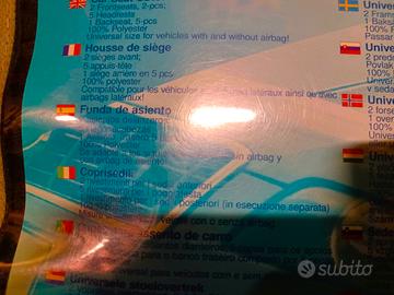confezione nuova mai usata di coprisedili universali per auto (erano stati comprati per una Fiat Panda vecchio modello). Prezzo 10 euro. Torino presso fermata metro pozzo strada