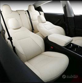 Causa inutilizzo vendo coprisedili per Tesla Model 3 (anni dal 2017 al 2023). I coprisedili non sono originali tesla ma sono di alta qualità, acquistati da mia moglie su sito di ricambi Tesery. Sono in vera pelle, di colore bianco, traforati ed arieggiati, per permettere climatizzazione e riscaldamento, quindi non vanno a danneggiare i sedili in pelle. Sono praticamente nuovi in quanto li ho montati una volta per verificare che calzassero alla perfezione, poi li ho tolti e non li ho più rimessi, quindi sono in condizioni perfette, pari al nuovo. Non li ho montati sulla mia auto in quanto faccio il falegname e spesso entro in macchina in condizioni pessime...quindi sarebbero durati poco, specialmente bianchi. Sempre tenuti negli appositi sacchetti in modo da non rovinarli. Il set comprende i due sedili anteriori, il poggia braccio centrale anteriore ed i tre sedili posteriori. Veloci da montare e davvero molto aderenti e stabili. Una volta montati i sedili sembrano bianchi come quelli nativi della vettura, come se non fossero ricoperti. Pagamento elettronico tramite paypal o subito. Accetto anche pagamento in contanti al ritiro. Ritiro possibile a mano in zona Rovereto, Trento o Mantova. Prezzo leggermente trattabile.