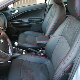I coprisedili fatti su misura asclusivamente di materili di ottima qualità. Ecopelle (Germania) + Alcantara (Italia). I coprisedili adatti soltanto per Alfa Romeo Giulietta (2013 in poi) il kit comprende le fodere per i sedili anteriori/posteriori + tutti poggiateste e il bracciolo anteriore. Possibilità di personalizzarli. Per magiori informazioni non esitete e contattate