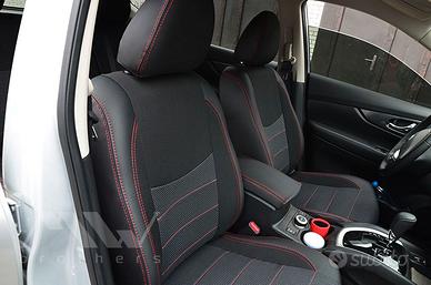 Nissan X-Trail T32 (2014-2021) il kit comprende le fodere per i sedili anteriori/posteriori + tutti poggiateste e il bracciolo anteriore e posteriore (se esiste). I nostri coprisedili mantengono i tutti specifici degli interni (ISOFIX/AIRBAG/Apertura dei braccioli e ribaltamento dello schienale anteriore/posteriore) Possibilità di personalizzarli. Per magiori informazioni non esitete e contattate