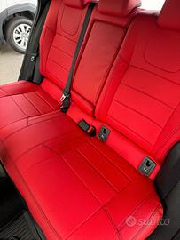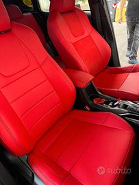 Il set è realizzato in ecopelle Arpatec di colore rosso intenso, con inserti centrali in Alcantara originale, per un look interno deciso e raffinato.