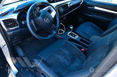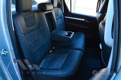 I coprisedili fatti su misure asclusivamente di materili di ottima qualità. Ecopelle (Germania) + Alcantara. I coprisedili adatti soltanto per Toyota Hilux 8 (2015-presente) kit comprende le fodere per i sedili anteriori/posteriori + tutti poggiateste e il bracciolo anteriore e posteriore (se esiste). I nostri coprisedili mantengono i tutti specifici degli interni (ISOFIX/AIRBAG/Apertura dei braccioli e ribaltamento dello schienale anteriore/posteriore) Possibilità di personalizzarli. Per magiori informazioni non esitete e contattate