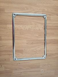 Cornice targa anteriore e posteriore in acciaio inox alta qualità Porta targa anteriore sotto paraurti in metallo nero con alette Kit fissaggio + Distanziali in gomma Vendo per un restauro mai andato in porto Sono ancora nella loro confezione originale VERO AFFARE!