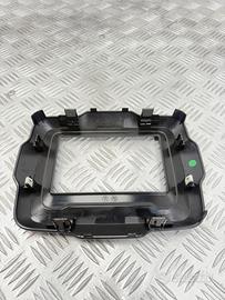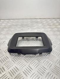 Cornice display uconnect Jeep Renegade BU , mascherina plancia centrale per alloggiamento schermo multimediale. Finitura grigio scuro / nero antracite con superficie satinata opaca antiriflesso. Profilo leggermente svasato verso l’interno per incorniciare il display Uconnect, con parte inferiore sagomata per adattamento ai comandi climatizzatore.