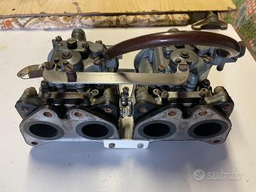 Vendo bellissimo corpo di aspirazione Lancia Fulvia 1.3 in buone condizioni generali. Nello specifico sono una coppia di carburatori doppio corpo Solex C35 PHH completi. I carburatori sono da revisionare, è presente in entrambi il distanziale d’aspirazione. Le staffe visibili in foto avvitate sui collettori sono solo per mantenere i carburatori allineati insieme, (naturalmente al montaggio sono da rimuovere). Sono ideali per motori 1.3 Fulvia, anche versione Zagato, credo anche per Simca rally ed infine adattabili per elaborazioni di motori Fiat 500/126. Vendo alla cifra di 200 euro. Possibilità di spedizione. Contattatemi pure per qualsiasi info al 334 7602163. Daniele.