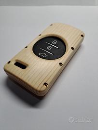 Elegante cover per chiave DR 5.0 realizzata in legno naturale di alta qualità. Questo accessorio distintivo presenta un design minimalista con il logo DR inciso in nero, che si integra perfettamente con le venature naturali del legno. La finitura liscia e satinata offre una presa confortevole, mentre la struttura robusta protegge efficacemente la chiave da graffi e urti quotidiani. La cover è dotata di un pratico foro per l'aggancio al portachiavi e si adatta perfettamente al profilo della chiave originale DR 5.0. Le dimensioni compatte e il peso contenuto non compromettono la portabilità, mantenendo inalterata l'esperienza d'uso della chiave. Questo accessorio rappresenta il complemento ideale per personalizzare e proteggere la chiave della vostra DR 5.0, aggiungendo un tocco di classe ed eleganza.