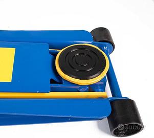 Cric idraulico con ruote in acciaio bidirezionali appoggiati su cuscinetti a sfera. Grazie alla portata massima di 4 tonnellate, e' uno strumento molto versatile e adatto per ogni tipo di utilizzo.Caratteristiche tecnichePortata max (Kg) 4000Max di sollevamento (mm) 75 - 500Dimensioni LxP (mm) 880 x350Altezza min/max (con manico) (mm) 14,5 - 1250Rotazione piattino appoggio 360 gradiValvola sicurezza sopraccarico SiNumero pistoni 2Peso (Kg) 40