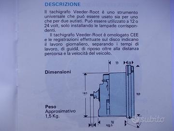 Per autocarri d'epoca,con impianto elettrico a 12 o 24 Volt,vendo cronotachigrafo Magneti Marelli-Veeder Root,serie 1111.Nuovo,corredato di accessori per il montaggio e manuale d'istruzioni.