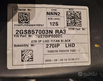Cruscotto VW Polo 2018-2025 2GS857003N Nuovo orig.