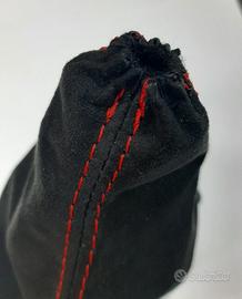 Cuffia del cambio in alcantara nera e cucitura rossa. Molto "racing style".