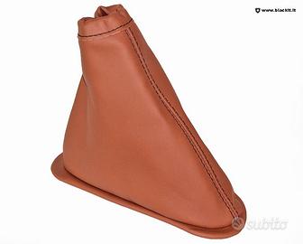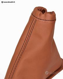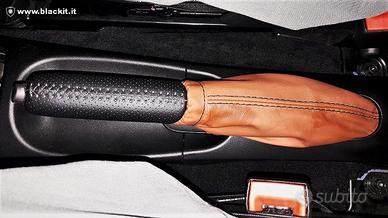 Cuffia freno a mano in vera pelle marrone con filo nero cuciture parallele per :