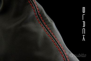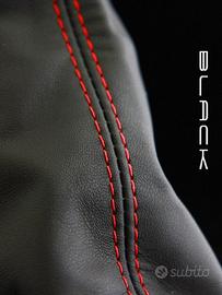 Cuffia freno a mano in vera pelle nera con filo rosso cuciture parallele per :
