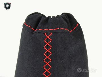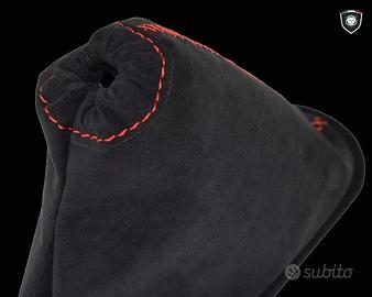 Cuffia freno a mano in alcantara nero con cuciture ROSSE INCROCIATE per 595 o 500 ABARTH.