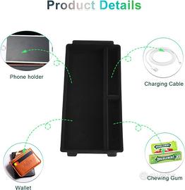 Suddiviso in più parti, comodo per riporre monete, carte di credito, cavi dati, telefoni cellulari, ecc.