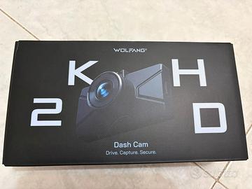 Vendo dashcam WOLFANG 2.5K doppia per auto, mai utilizzata, completa di scheda SD da 32GB.