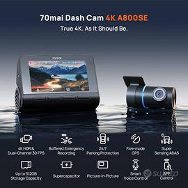 70mai A800SE Dashcam 4K+1080P GPS WiFi, Doppia Telecamera Auto Fronte/Retro con SD 128GB, F1.55, HDR, Visione Notturna, ADAS, Schermo 3", Parcheggio 24/7, Supporta fino a 512GB NUOVA