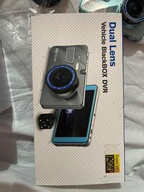 BAIDELUO Telecamera per auto a doppia lente, 720p, 30FPS, 12-24V, Batteria al litio-polimero ricaricabile 150mAh, Controllo con pulsante, Montaggio universale, Montaggio a ventosa, Visione notturna anteriore e posteriore, con modalità di alimentazione tramite presa per auto, per una guida sicura