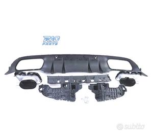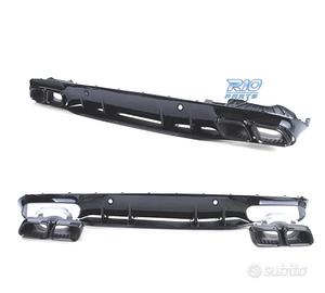 DIFFUSORE MERCEDES CLASSE C C205 COUPÉ 15-18 LOOK AMG C63 NERO LUCIDO + TERMINALI DI SCARICO NERO