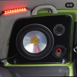 Diffusori artigianali per VW Lupo o Seat Arosa realizzati partendo da 0. Ogni diffusore è composto da un subwoofer Momo da 30 cm un midrange Tec e tweeter mantra, completi di crossover passivi. Sistema a due canali. Per il montaggio/smontaggio non è necessaria alcuna modifica irreversibile alla macchina, ma solo la rimozione dei vetri posteriori (operazione molto semplice). Per ulteriori informazioni contattatemi senza problemi.